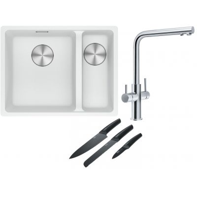 Franke Maris MRG 160-34-15SBR zlewozmywak 52x40 cm Fragranite biały polarny z baterią kuchenną Neptune Clear Water chrom (1250687267, 1150370689)