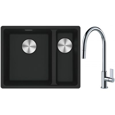 Franke Maris MRG 160-34-15SBR zlewozmywak 52x40 cm Fragranite czarny mat z baterią kuchenną Ambient chrom (1250687264, 1150373947)