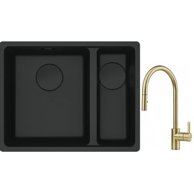 Franke Maris MRG 160-34-15SBR zlewozmywak 52x40 cm Fragranite czarny mat z baterią kuchenną Eos Neo M Pull-Out Spray złotą (1250697755, 1150681244)