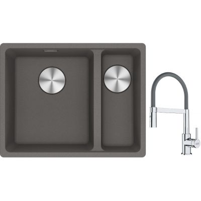 Franke Maris MRG 160-34-15SBR zlewozmywak 52x40 cm Fragranite kamienny szary z baterią kuchenną Lina chrom/szary (1250687266, 1150626087)