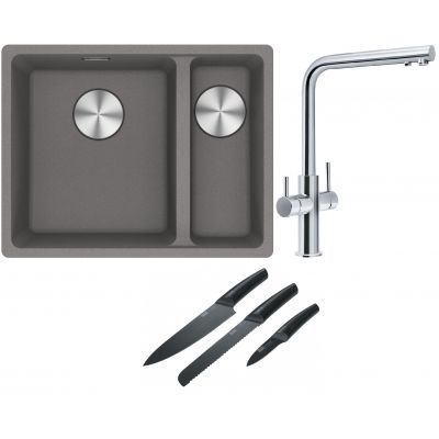 Franke Maris MRG 160-34-15SBR zlewozmywak 52x40 cm Fragranite kamienny szary z baterią kuchenną Neptune Clear Water chrom (1250687266, 1150370689)