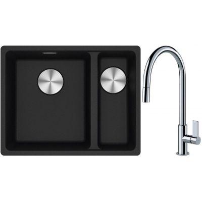 Franke Maris MRG 160-34-15SBR zlewozmywak 52x40 cm Fragranite onyx z baterią kuchenną Ambient chrom (1250687265, 1150373947)