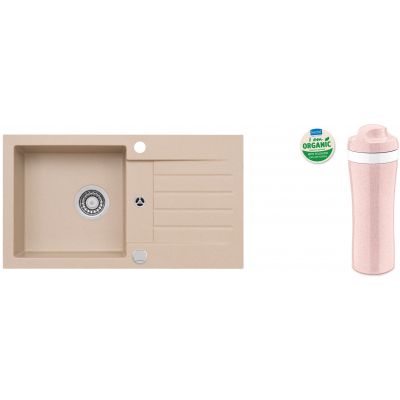 Genesis Amaro 130 zlewozmywak 75x42 cm granitowy beż z bidonem Koziol Oase 425 ml różowy (9923355, 3708669)