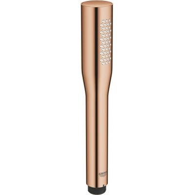 Słuchawka prysznicowa GROHE Euphoria Cosmopolitan to nowoczesne rozwiązanie dla Twojej łazienki. Jej elegancki, minimalistyczny design został podkreślony powłoką Warm Sunset, stanowiącą namiastkę zachodu słońca w Twoim domu. Ta ciepła tonacja wprowadzi przyjemną atmosferę do nowoczesnego wnętrza podkreślając jego wysublimowany charakter. Warm Sunset idealnie komponuje się z aranżacjami wykorzystującymi elementy ciemnego marmuru i betonu. Podobnym poziomem perfekcji może się poszczycić technologia DreamSpray®, która dba o równomierne rozprowadzanie wody. Dzięki niej przepływ z każdej dyszy będzie idealnie zbalansowany, zapewniając Twojej skórze niebywałe ukojenie. W trosce o cenne zasoby naturalne, słuchawkę wykonano w systemie EcoJoy®, redukującym zużycie wody nawet o 50% bez utraty wydajności. Po kąpieli z łatwością usuniesz osady wapienne z tarczy prysznicowej, dzięki technologii SpeedClean® - wystarczy, że przetrzesz ją palcem. Odkryj elegancką niezawodność i zaproś GROHE Euphoria Cosmopolitan do swojej łazienki.