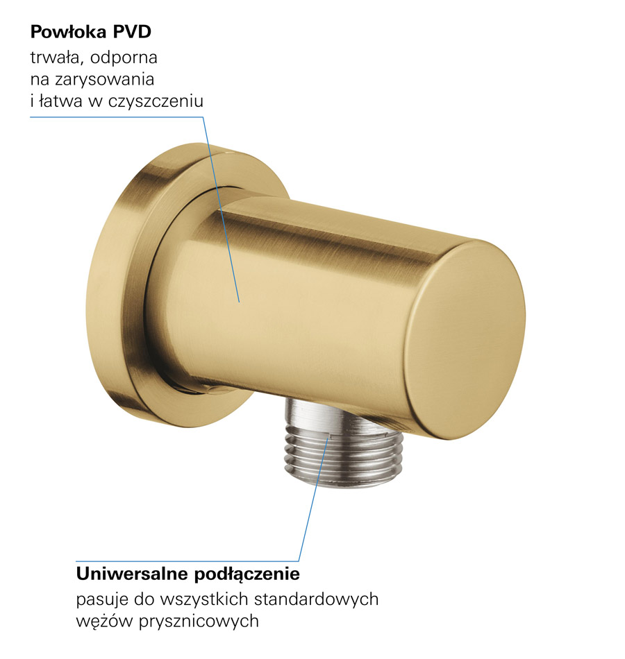 Opis produktu Grohe Rainshower przyłącze kątowe ścienne brushed cool sunrise 27057GN0