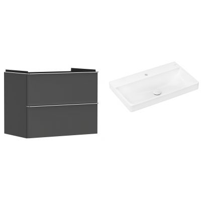 Opis zestawu Hansgrohe Xelu Q szafka wisząca z umywalką 80x48 cm szary diament mat/chrom/biały (54028000, 61020450)