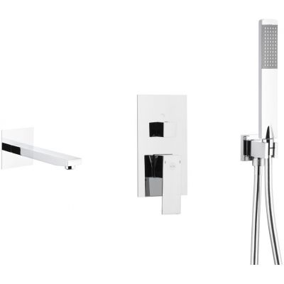 Opakowanie zawiera: bateria kompletna, wylot wannowy podtynkowy oraz rączka natrysku, przyłącze ścienne kątowe, instrukcja montażu i obsługi baterii z gwarancją.