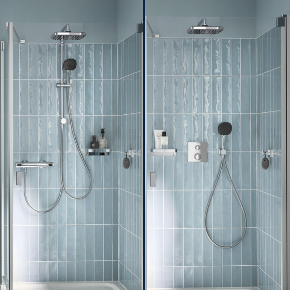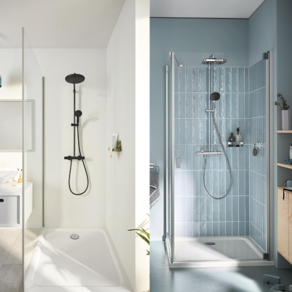 Wybierz deszczownicę i słuchawkę w jednym z dwóch eleganckich kształtów:- Okrągłym GROHE Vitalio Start