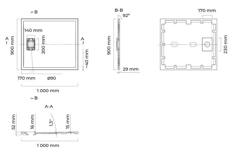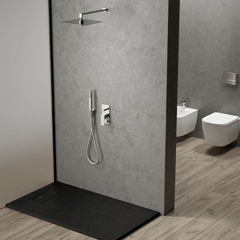 Oltens Bergytan brodzik 100x90 cm prostokątny RockSurface czarny mat 15101300