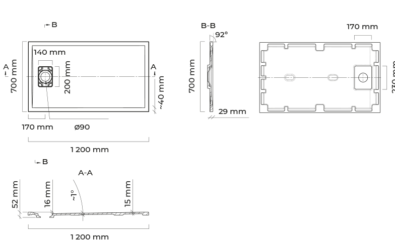 Oltens Bergytan brodzik 120x70 cm prostokątny RockSurface szary beton 15102700
