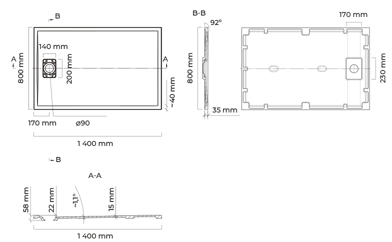 Oltens Bergytan brodzik 140x90 cm prostokątny RockSurface czarny mat 15107300