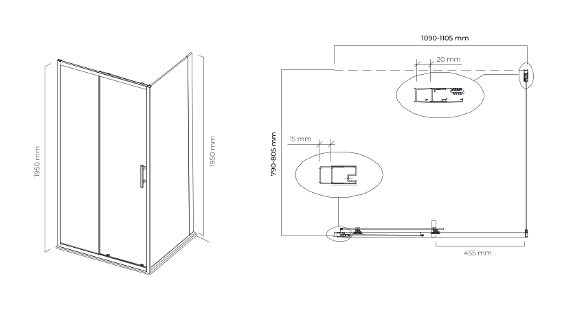 Opis zestawu Oltens Fulla kabina prysznicowa 110x80 cm prostokątna drzwi ze ścianką chrom/szkło przezroczyste 20207100