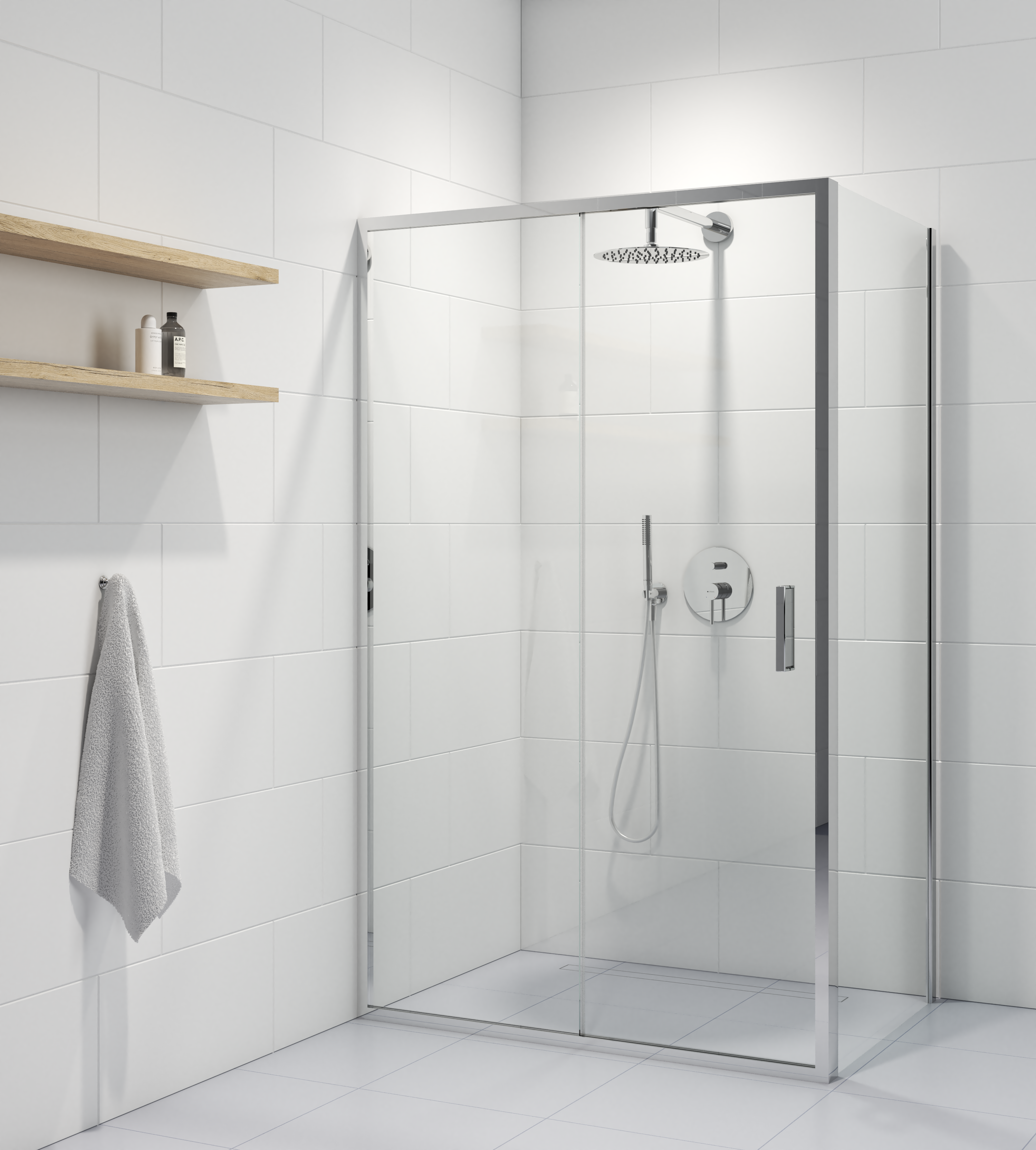 Kabina prysznicowa prostokątna z drzwiami przesuwnymi, szkło przezroczyste gr. 6mm z powłoką Oltens SmartClean nakładaną w procesie produkcyjnym po obu stronach szyby.
