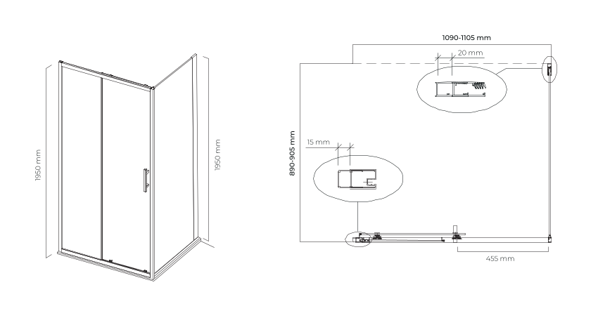 Opis zestawu Oltens Fulla kabina prysznicowa 110x90 cm prostokątna drzwi ze ścianką chrom/szkło przezroczyste 20208100