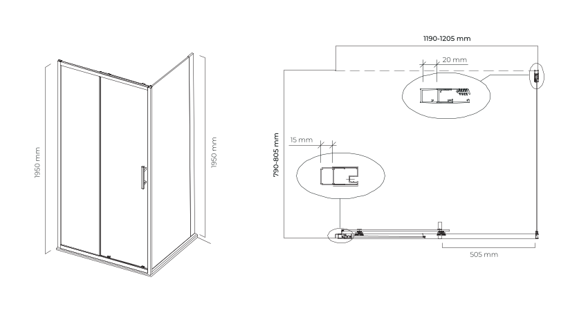 Opis zestawu Oltens Fulla kabina prysznicowa 120x80 cm prostokątna drzwi ze ścianką chrom/szkło przezroczyste 20203100