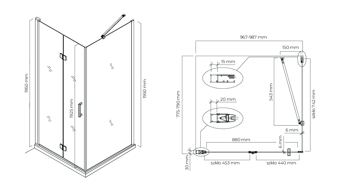 Opis zestawu Oltens Hallan kabina prysznicowa 100x80 cm prostokątna drzwi ze ścianką czarny mat/szkło przezroczyste 20204300
