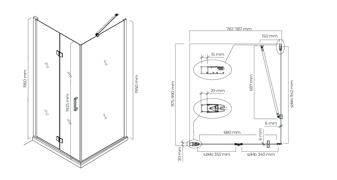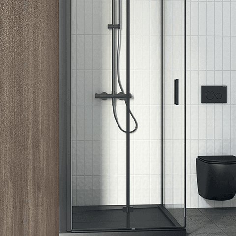 Opis zestawu Oltens Hallan kabina prysznicowa 80x100 cm prostokątna drzwi ze ścianką czarny mat/szkło przezroczyste 20201300