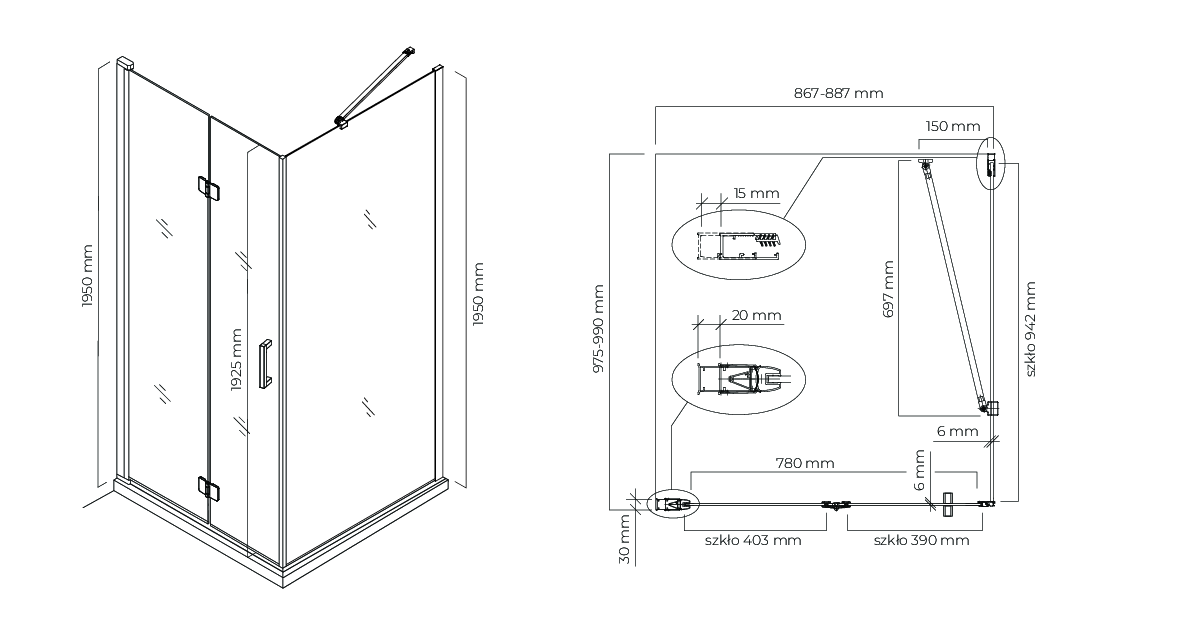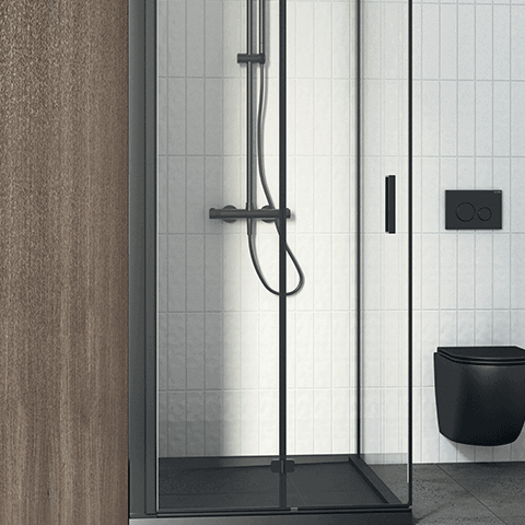 Opis zestawu Oltens Hallan kabina prysznicowa 90x100 cm prostokątna drzwi ze ścianką czarny mat/szkło przezroczyste 20203300