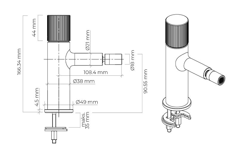 Okrągłą cześć na samej górze baterii podnosimy do góry, tak jak przy tradycyjnych bateriach i przekręcamy w lewą lub w prawą stronę w zależności od chcianej temperatury wody.