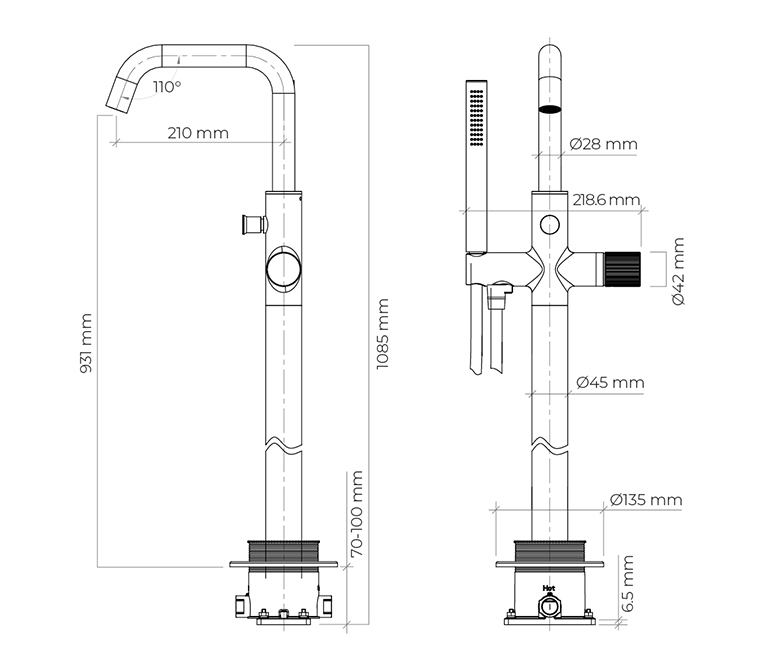 Opis produktu Oltens Hamnes bateria wannowo-prysznicowa wolnostojąca czarny mat 34302300