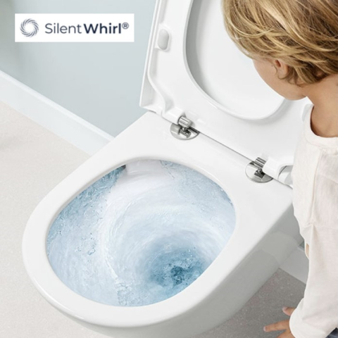 Technologia SilentWhirl wykorzystuje moc wiru wodnego by jeszcze ciszej i dokładniej spłukać wodę w toalecie.