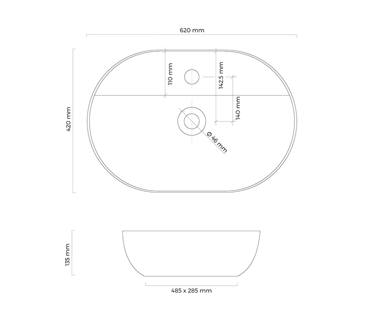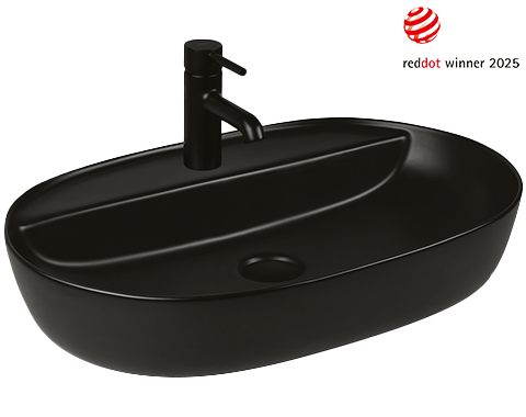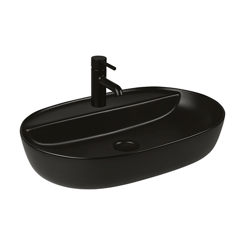 Oltens Hamnes Thin umywalka 62x42 cm nablatowa owalna z powłoką SmartClean czarny mat 41814300