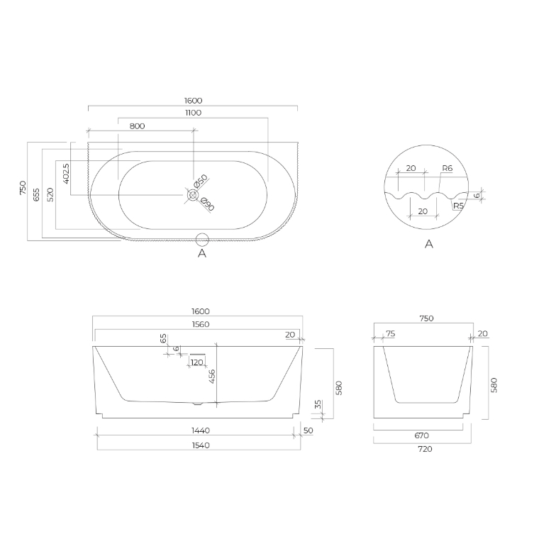 Oltens Hamnes wanna przyścienna 160x75 cm biała 12025000
