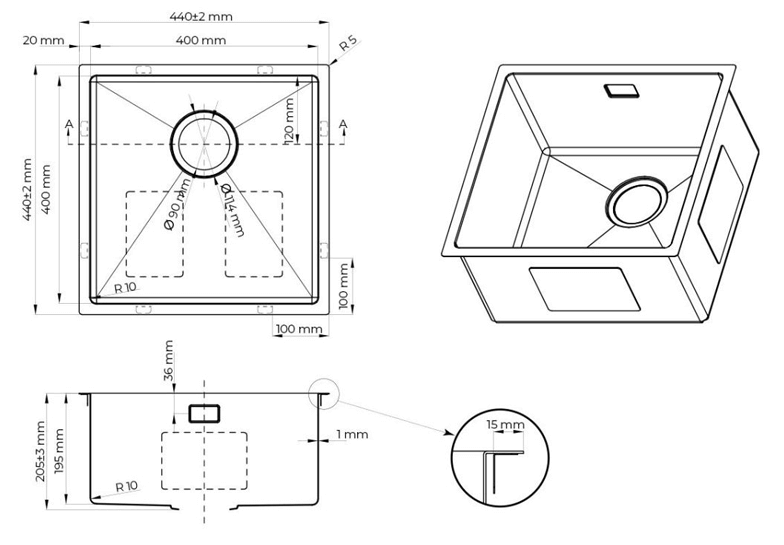 - Oltens Hydda zlewozmywak stalowy 44x44 cm 1 komorowy...