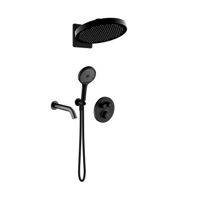 Oltens Katla zestaw bateria wannowo-prysznicowa podtynkowa z deszczownicą Regna i słuchawką 3-funkcyjną Luva EasyClick czarny mat 36067300