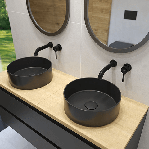Okrągła umywalka nablatowa z serii Lagde w kolorze czarnego matu, to propozycja dla osób ceniących komfort użytkowania oraz stylowy design. Została zaprojektowana, aby zapewnić maksymalną wygodę podczas codziennych zabiegów pielęgnacyjnych, gwarantując równocześnie (dzięki wysokości 12 cm) zmniejszone ryzyko zachlapania wodą blatu, na którym będzie zamontowana