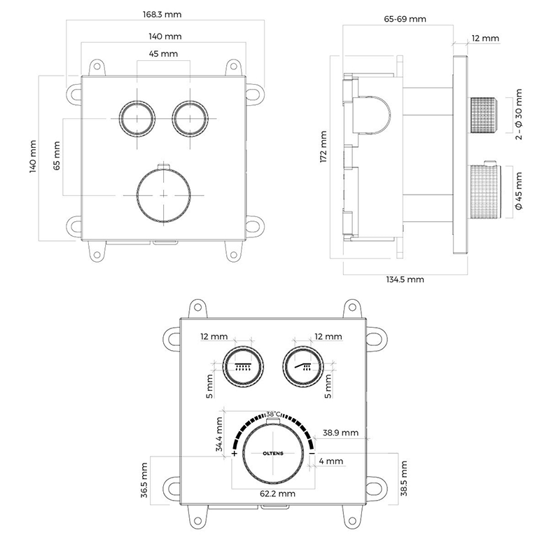 Opis produktu Oltens Onega (S) bateria wannowo-prysznicowa podtynkowa termostatyczna czarny mat 34602300