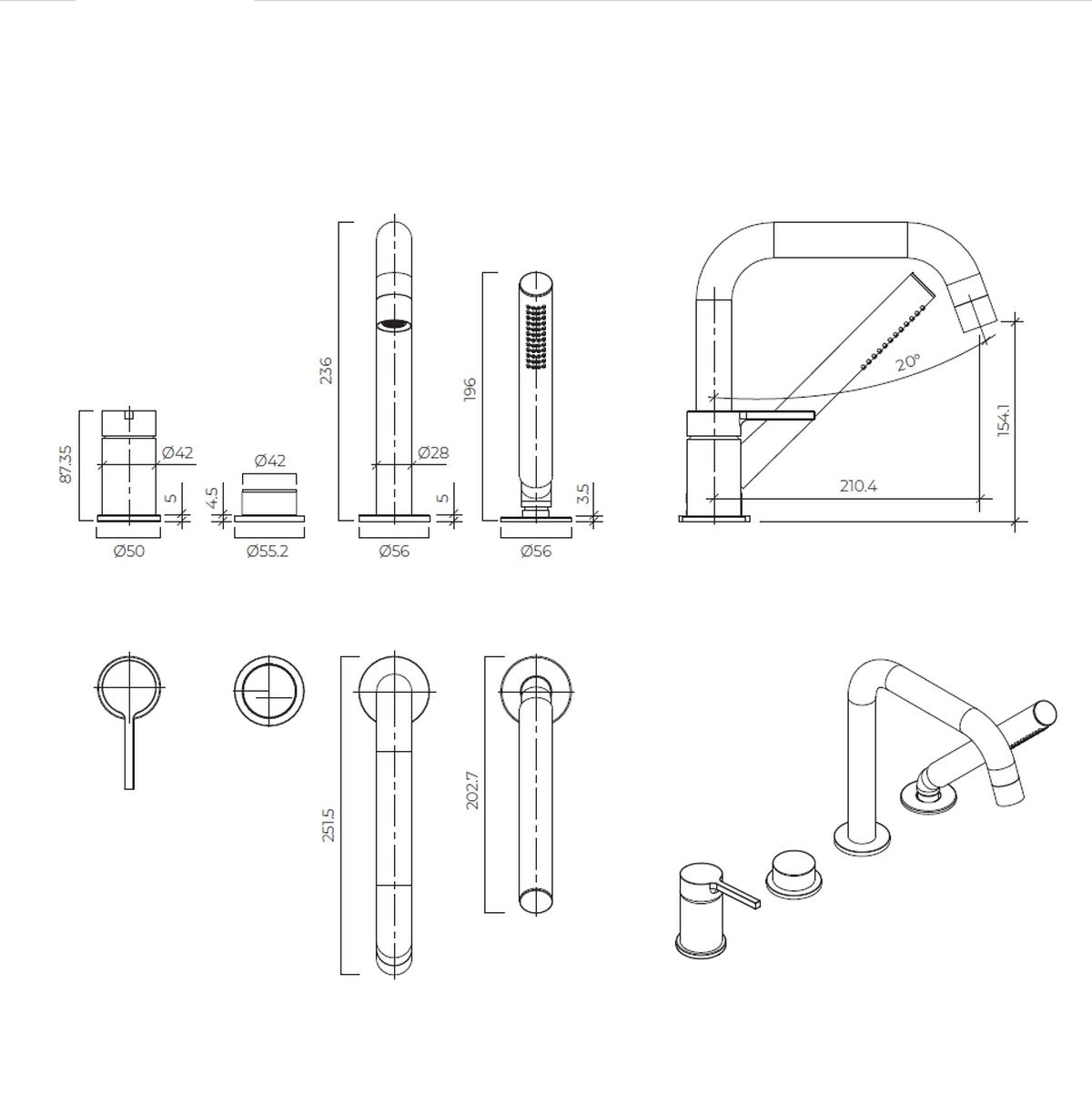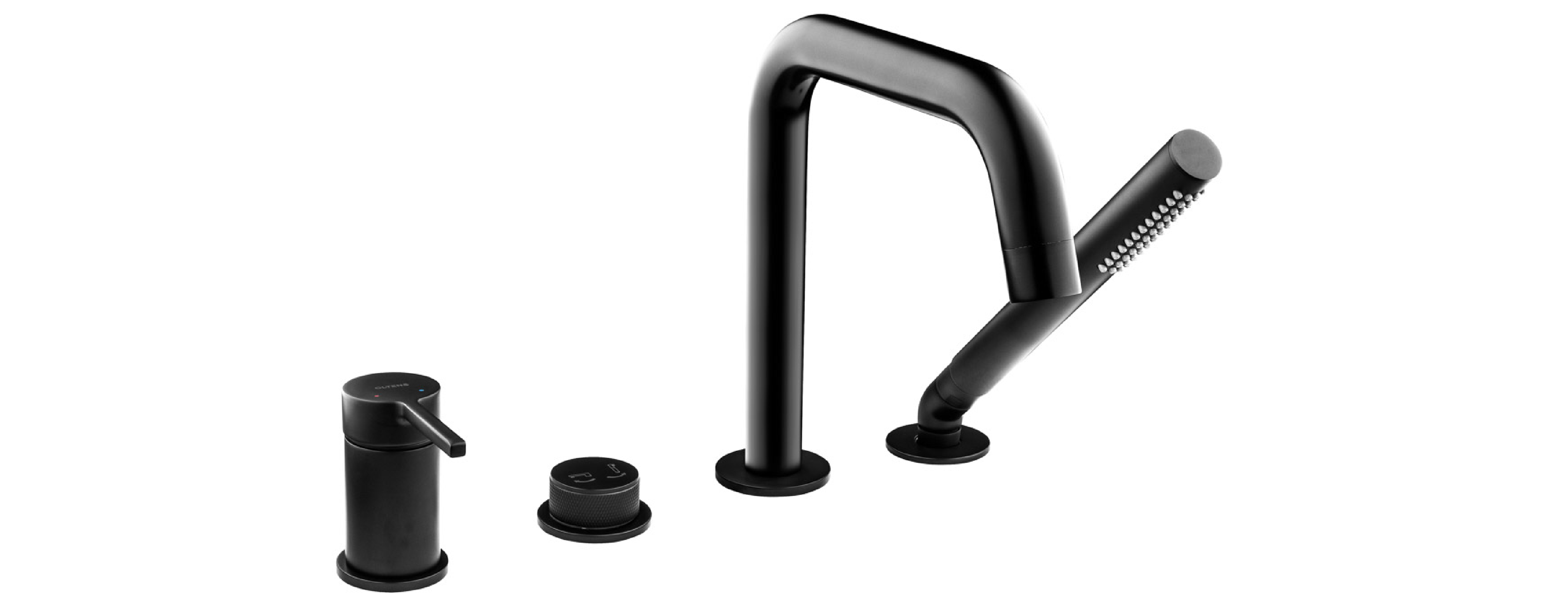Oltens Rann bateria wannowo-prysznicowa 4 otworowa nawannowa czarny mat 34205300