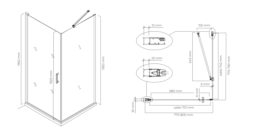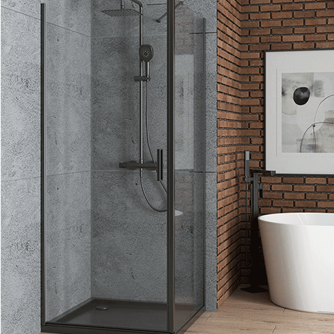 Opis zestawu Oltens Rinnan kabina prysznicowa 80x80 cm kwadratowa drzwi ze ścianką czarny mat/szkło przezroczyste 20013300