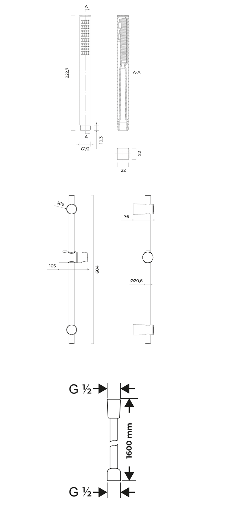 | W zestawie | słuchawka prysznicowa, wąż prysznicowy, drążek prysznicowy |