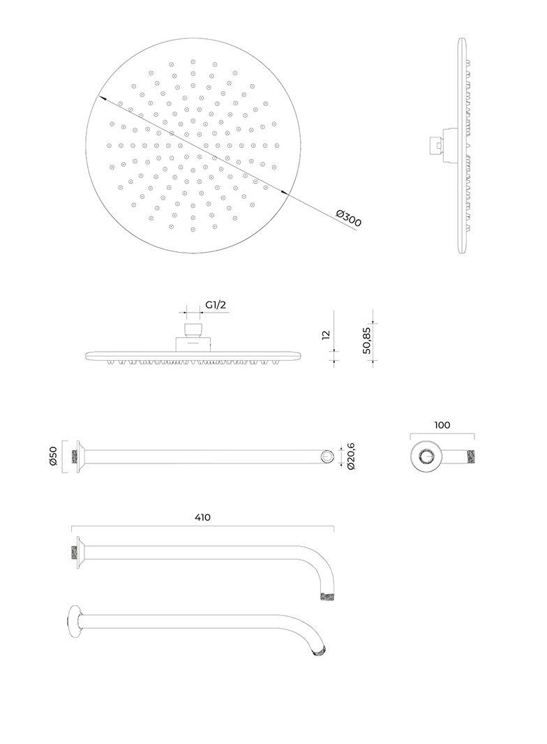 (1)Oltens Sondera Lagan deszczownica 30 cm okrągła z ramieniem ściennym chrom 36013100
