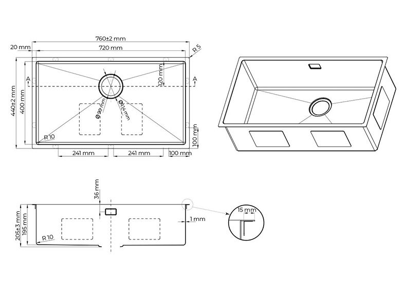 Powierzchnia zlewu jest matowa miła w dotyku, pozwala na łatwe czyszczenie, jest niepodatna na działania chemicznych preparatów, struktura nie ulega przebarwieniom.
