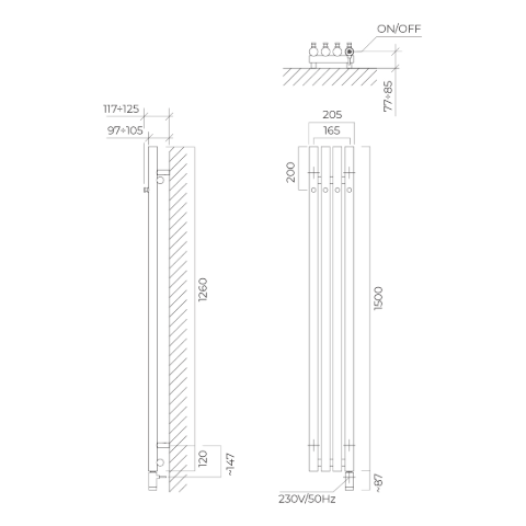 Oltens Stang (e) grzejnik elektryczny 150x20,5 cm miedź szczotkowana 55120610