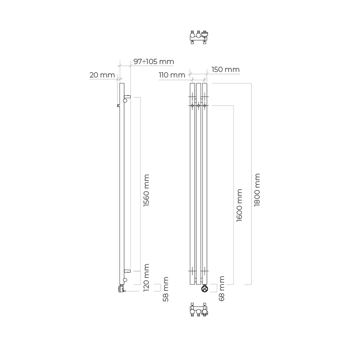 - Oltens Stang (e) grzejnik elektryczny 180x15 cm grafit...