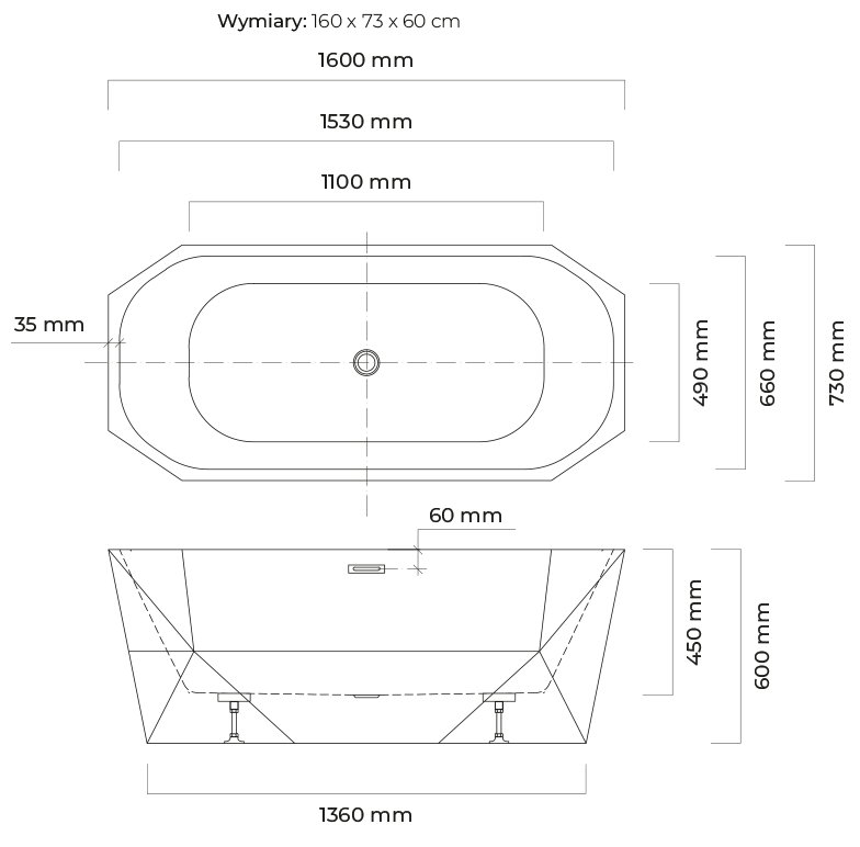 Jej opływowy kształt, zaokrąglone krawędzie i wyprofilowane wnętrze sprawią, że każda kąpiel będzie wyjątkowo komfortowa. Całość wykonana jest z białego akrylu wzmocnionego laminatem, dzięki czemu wanna posłuży Ci przez długie lata i będzie łatwa w utrzymaniu w czystości. Odpływ z korkiem typu klik-klak umieszczony został na krótkim boku.