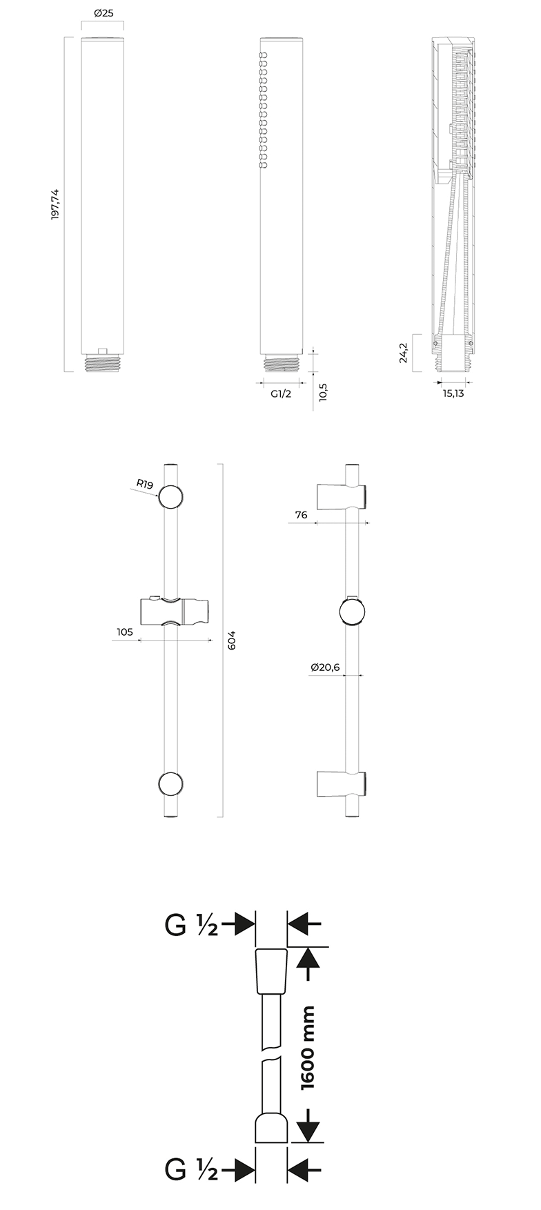 | W zestawie: | słuchawka prysznicowa, wąż prysznicowy, drążek prysznicowy |