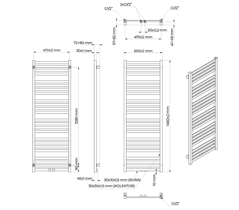 Oltens Vanlig grzejnik łazienkowy dekoracyjny 146x50 cm czarny 55009300