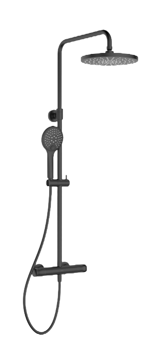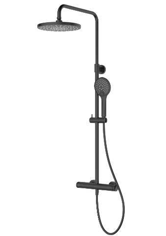 Opis produktu Oltens Vatten zestaw prysznicowy ścienny termostatyczny z deszczownicą czarny mat 36505300