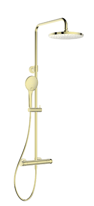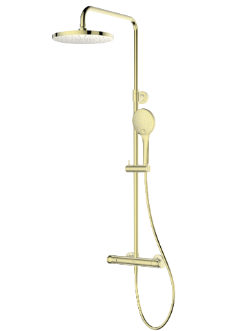 Opis produktu Oltens Vatten zestaw prysznicowy ścienny termostatyczny z deszczownicą złoty połysk 36505800