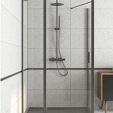 Opis zestawu Oltens Verdal kabina prysznicowa 100x90 cm protokątna drzwi ze ścianką czarny mat/szkło przezroczyste 20211300