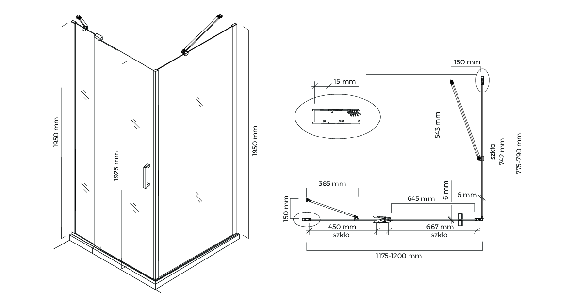 Opis zestawu Oltens Verdal kabina prysznicowa 120x80 cm prostokątna drzwi ze ścianką czarny mat/szkło przezroczyste 20210300