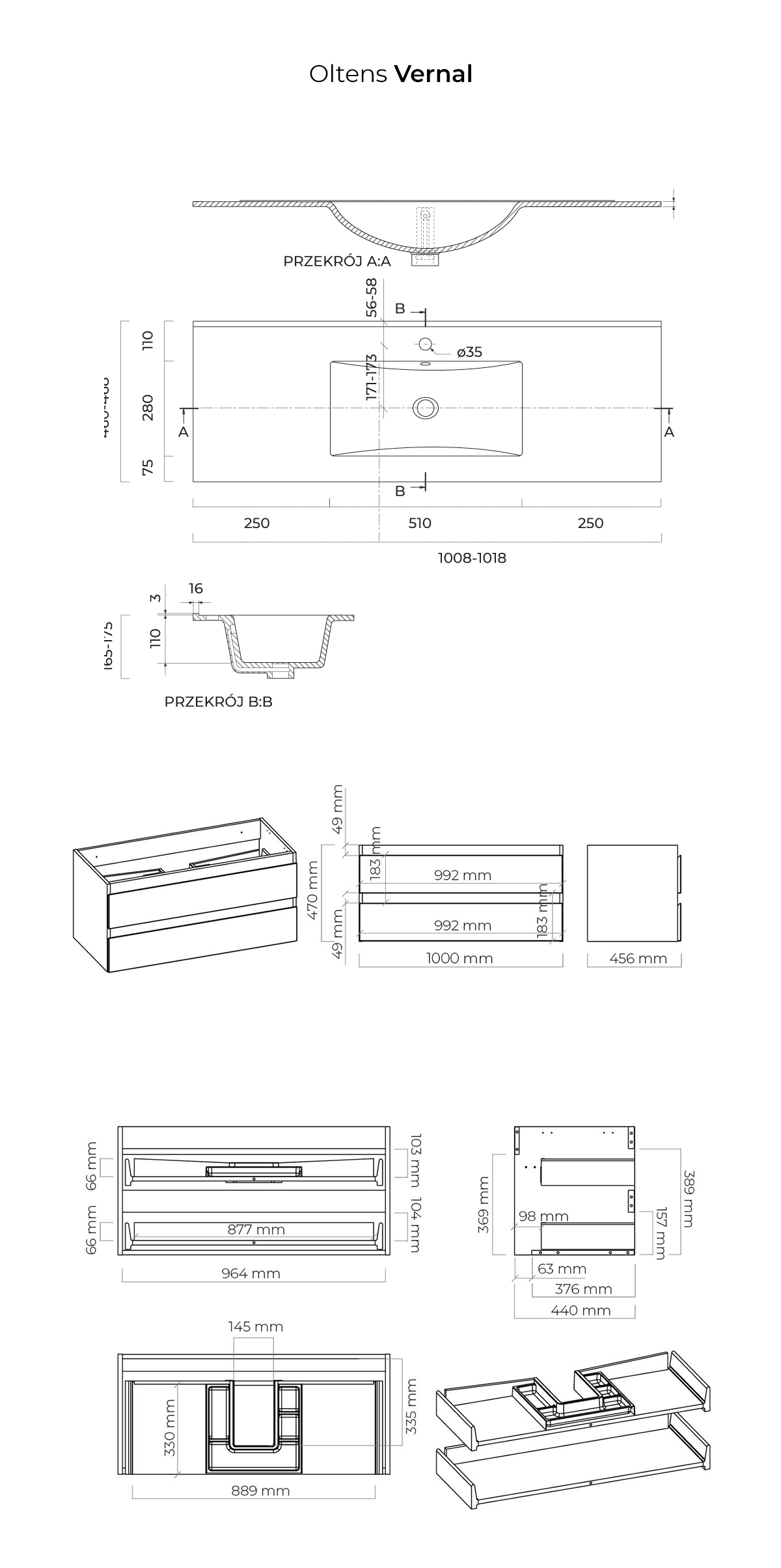 W szafce zamontowane są 2 szuflady z systemem Oltens QuietClose