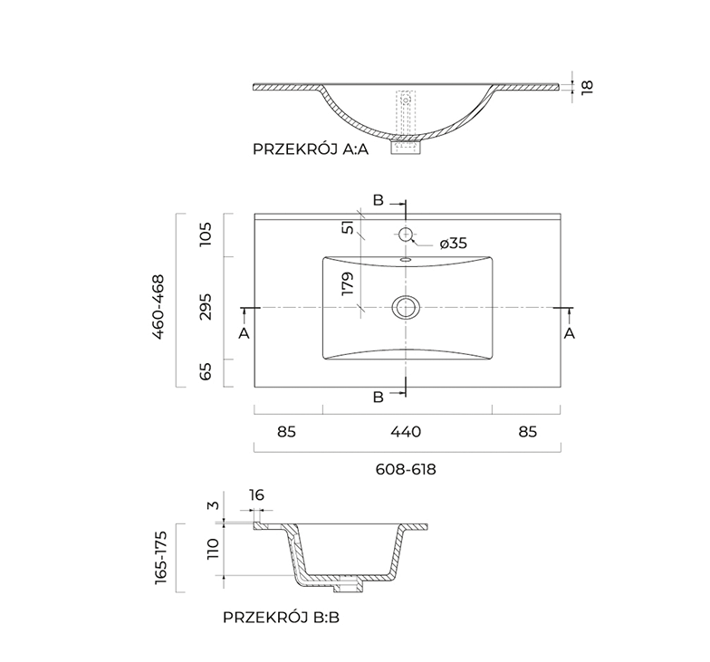 - wysokość umywalki 17 cm