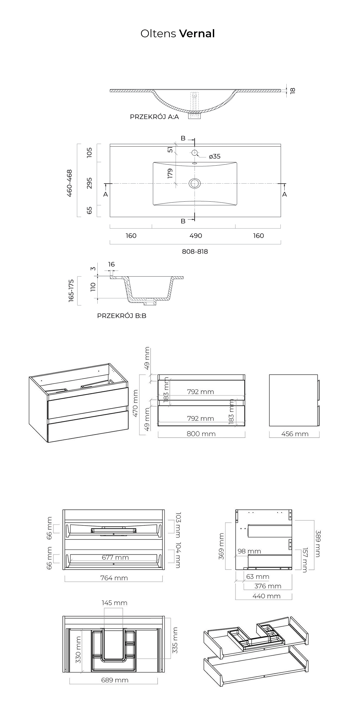 Opis zestawu Oltens Vernal umywalka z szafką 80 cm biała 68003000