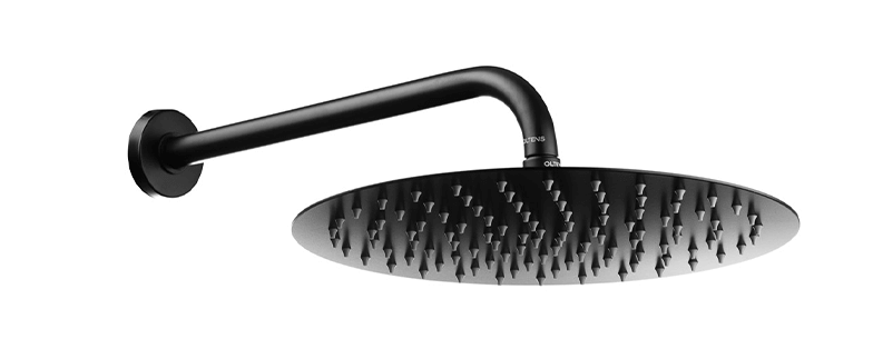 Oltens Vindel Lagan deszczownica 30 cm okrągła z ramieniem ściennym czarny mat 36012300