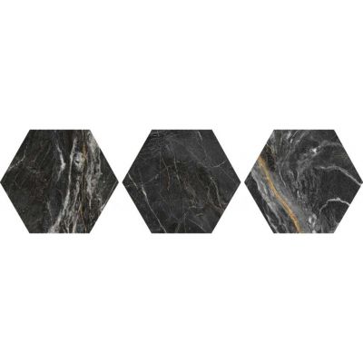 Oset Marquina gold hex płytka ścienno-podłogowa 20x24 cm czarny satynowy